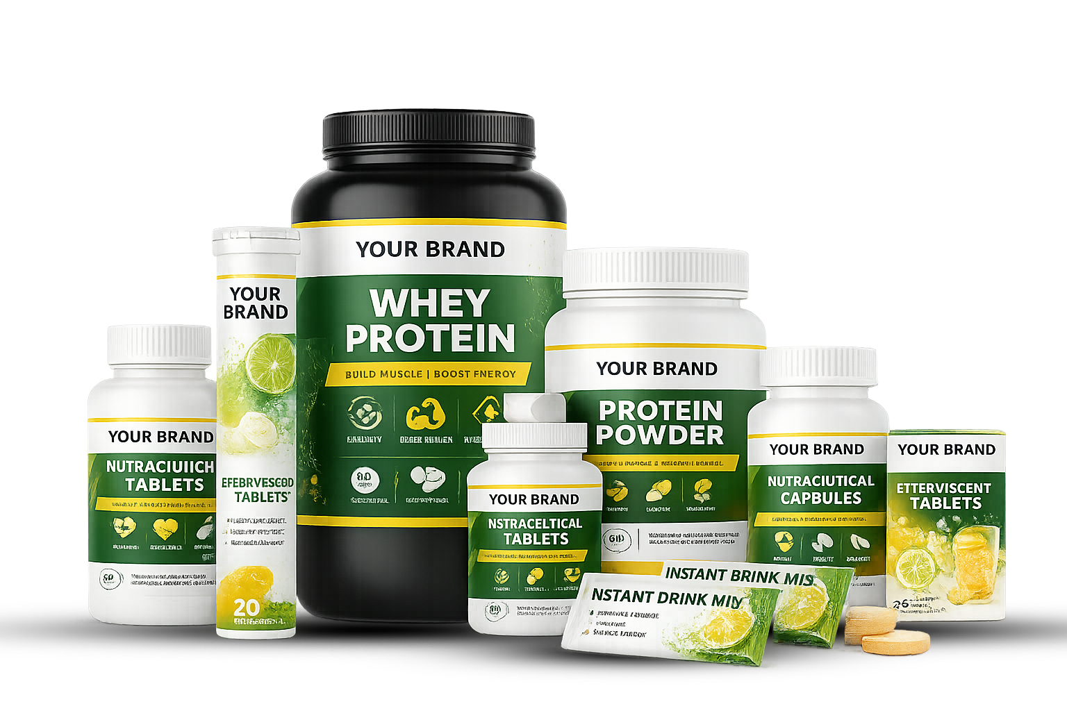 We manufacture a complete range of supplements including tablets, capsules, protein powders, effervescent tablets, and sachets for multiple health segments.